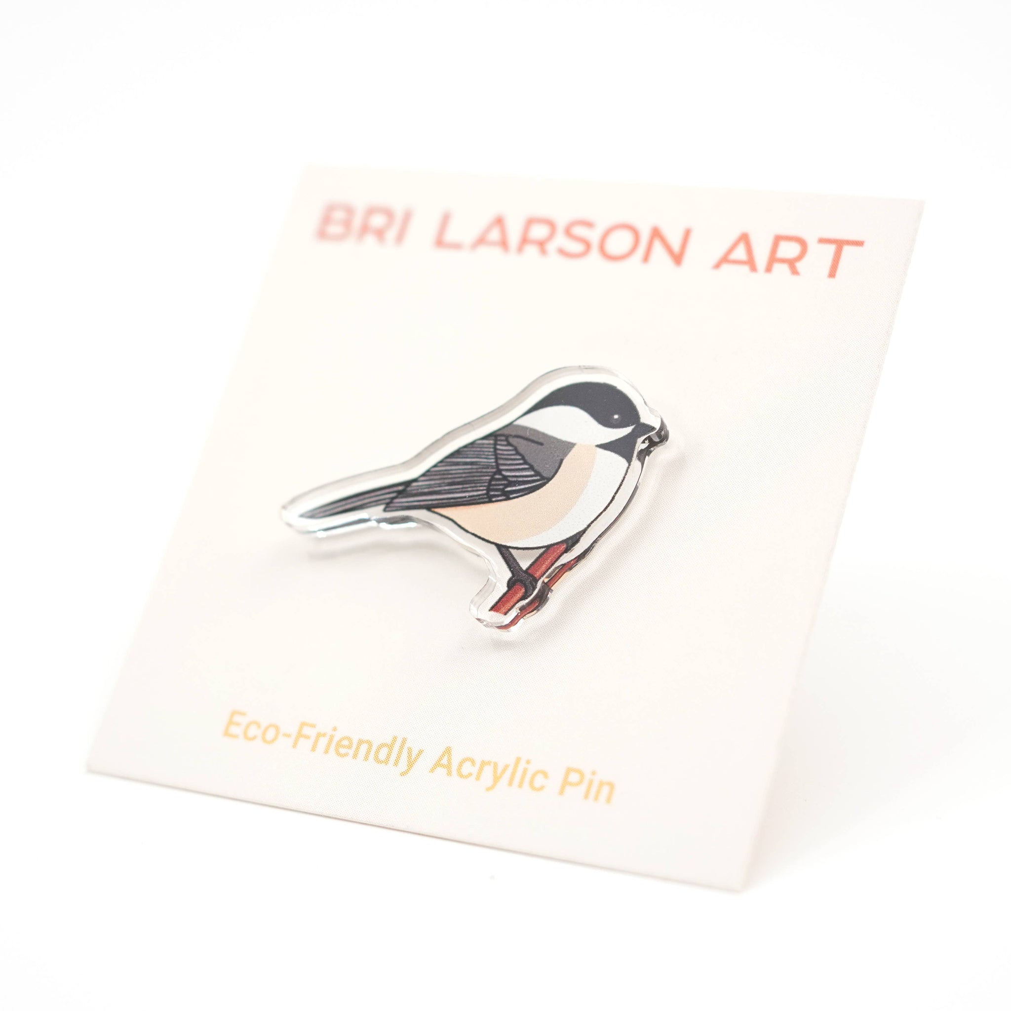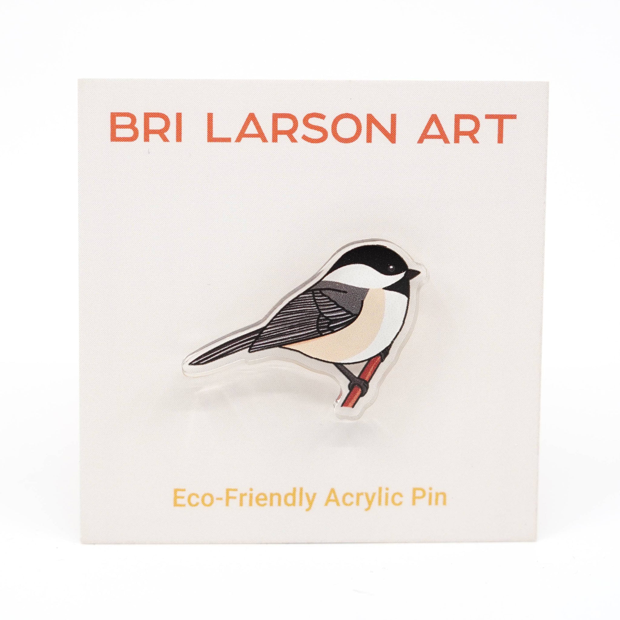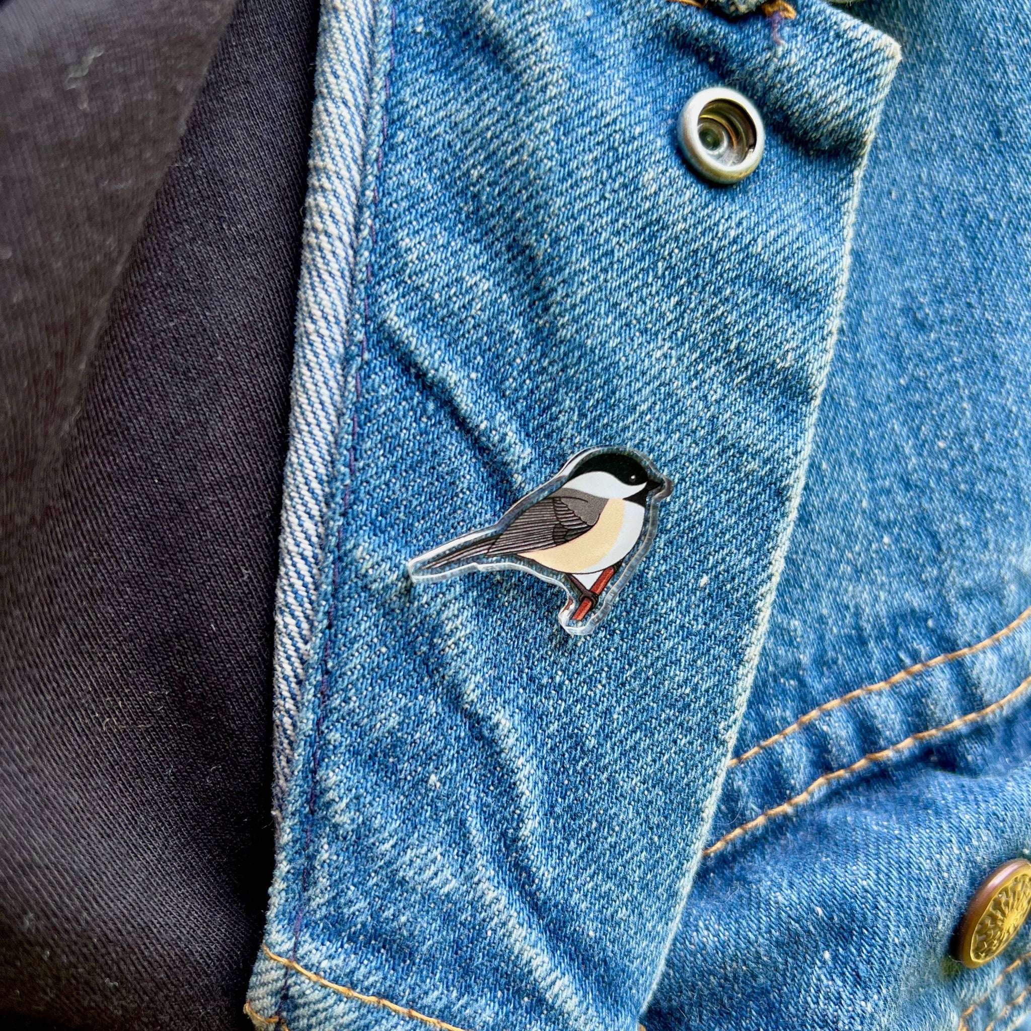 Show off your love of the black capped chickadee with this eco-friendly acrylic pin! Measures approximately 1.25 inches wide.
