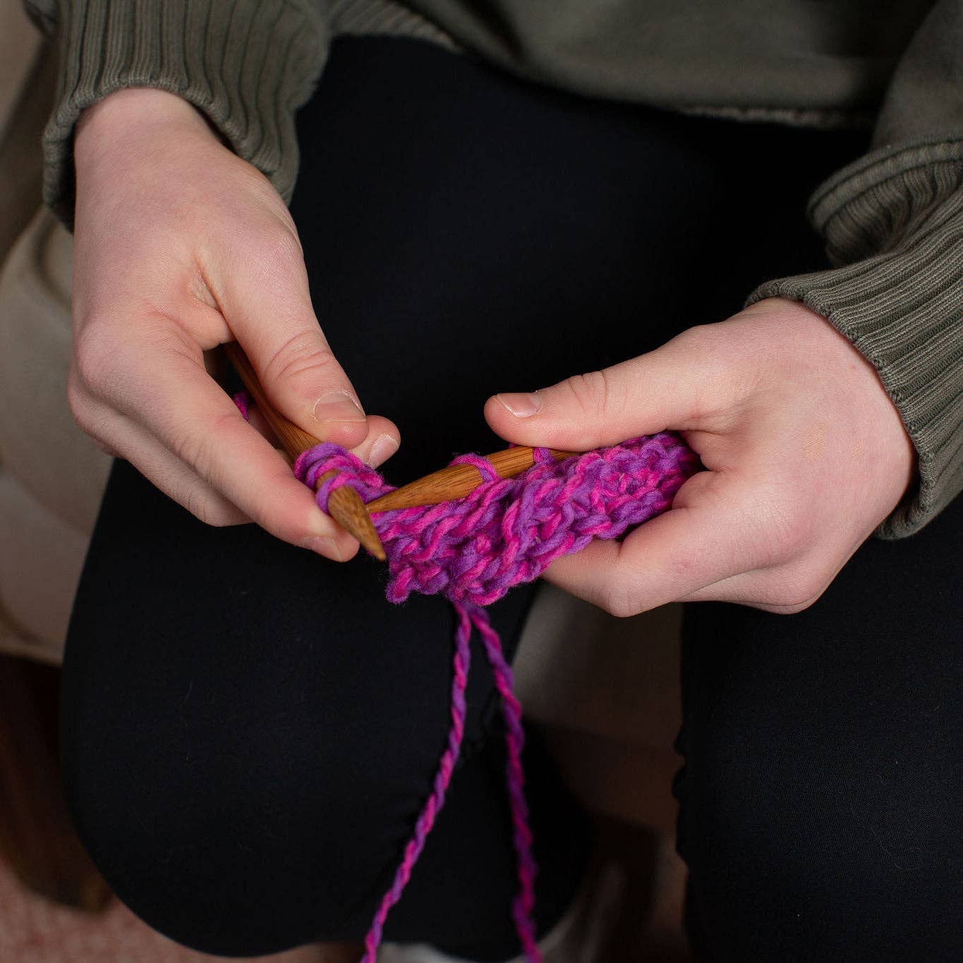 Ages 8+ This beginner-friendly knitting kit is perfect for first-time knitters! With easy-to-follow instructions, you can teach yourself how to create a beautiful blue scarf. The finished scarf measures approximately 4" x 58". A great way to start your knitting journey!