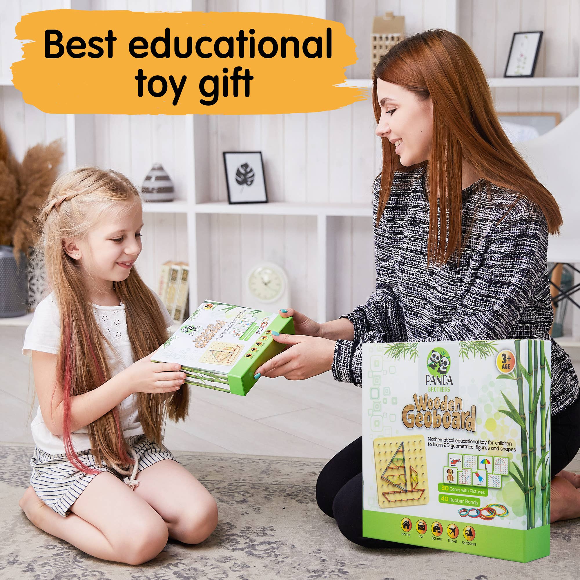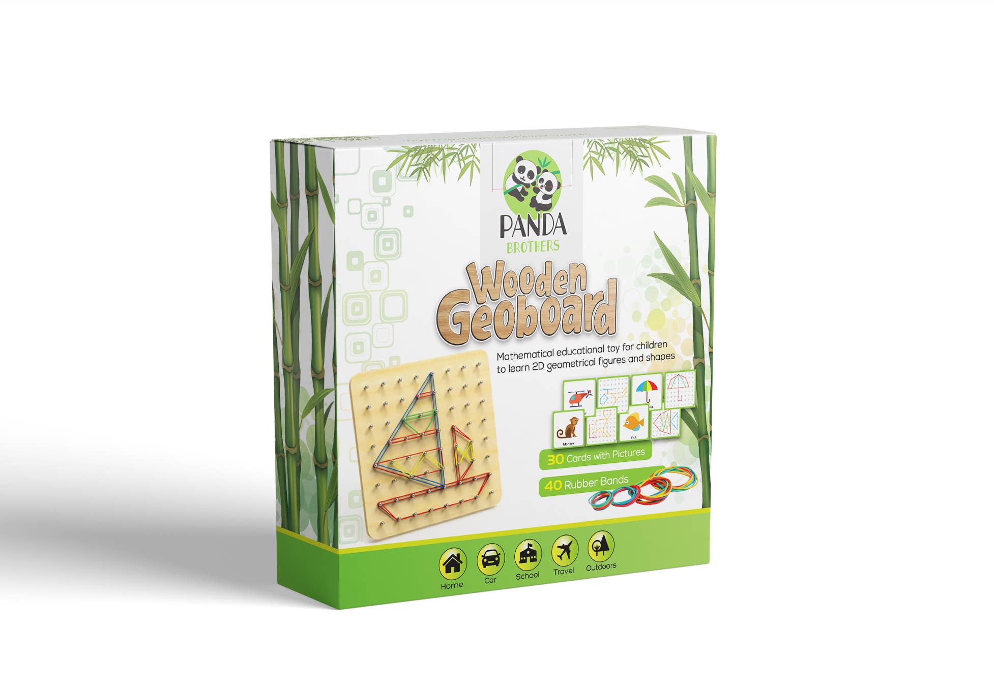 Wooden Geoboard is an activity board game for kids of preschool and school age. Perfect Set for Small Hands the Wooden Geoboards come with 64 nails, 30 pattern cards, and 40 colored rubber bands to allow your kid to develop his imagination by creating multiple geometric shapes and patterns.