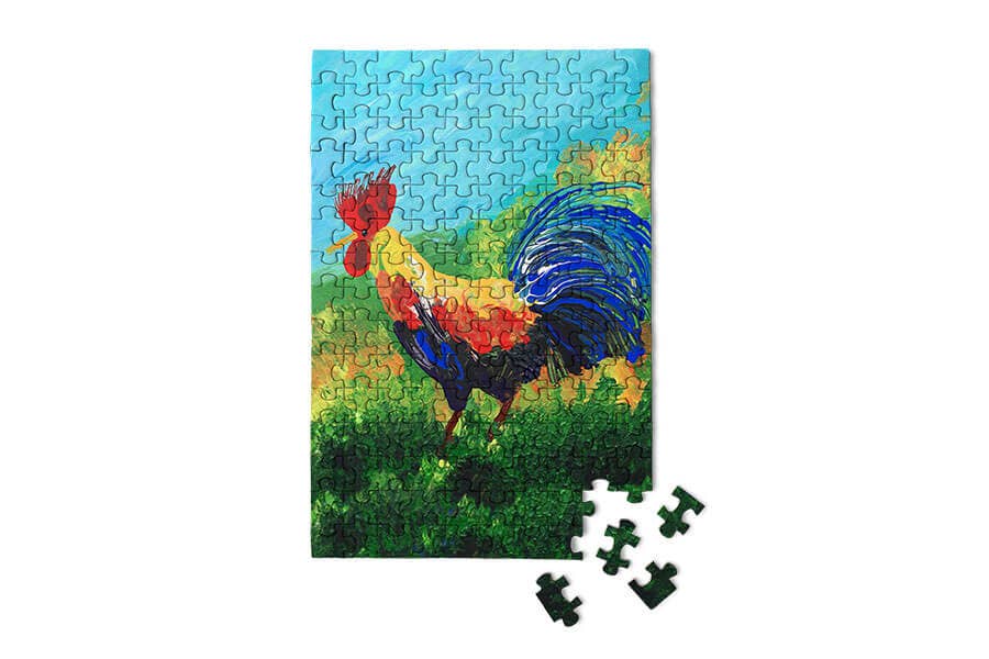 Farm living with this colorful rooster...plus part of the proceeds of this sale benefit the charity Art With Intention. 150 pieces - finished size is 4"x6" Suitable for framing in a standard 4x6 frame Makes a great gift!