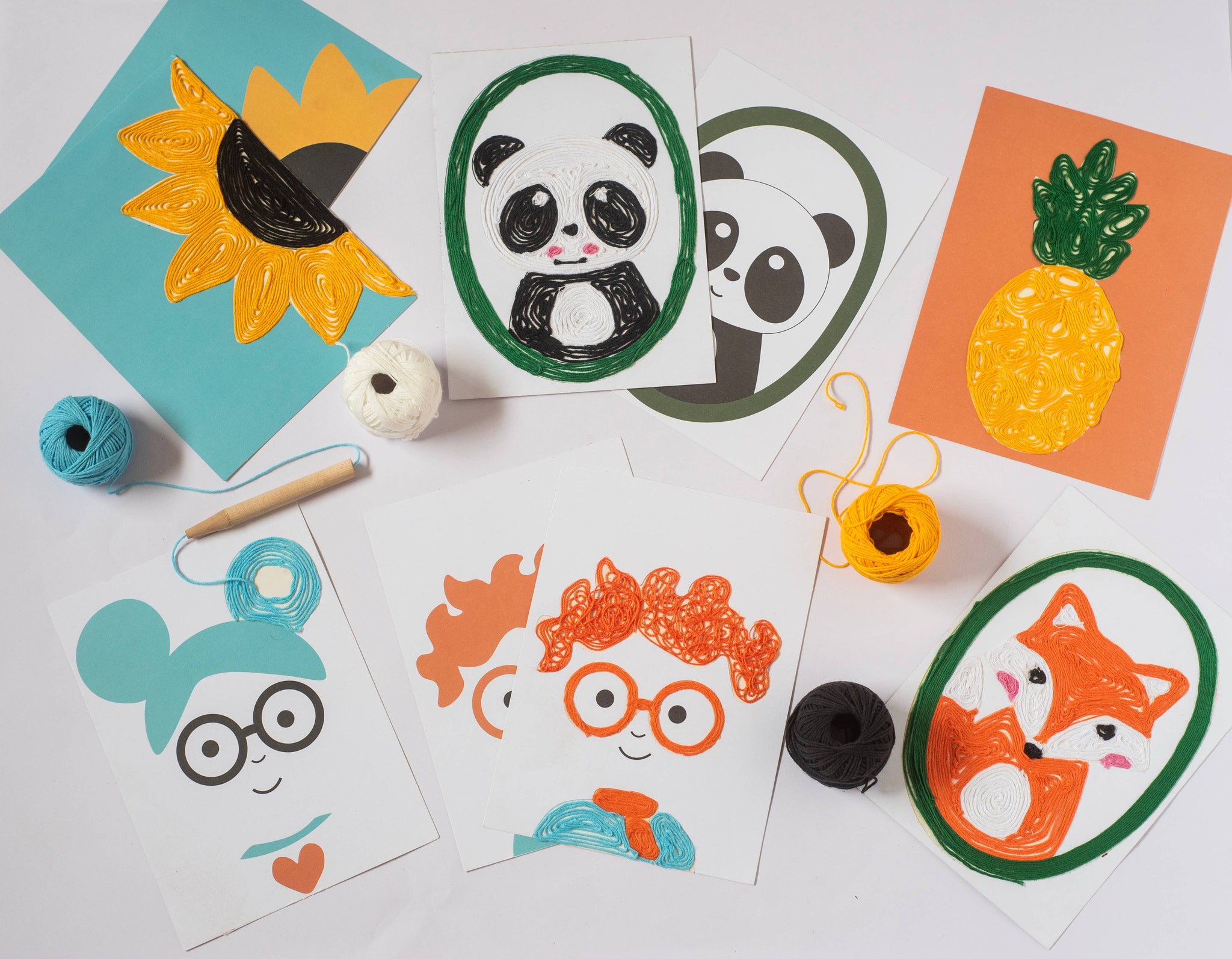 A fresh and fun craft activity where kids “draw” with thread! Using colorful embroidery threads and special wooden pens, children complete guided designs on sticky sheets—each with a unique theme.